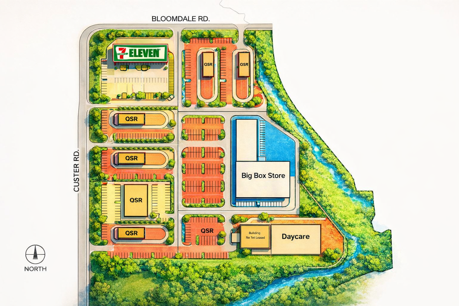The Custer / Bloomdale Retail Addition showcases Mugdha Ventures’ capability to execute modern retail development strategies that prioritize tenant quality, local demand alignment, and long-term sustainability. The project reflects disciplined site selection and a pragmatic approach to retail real estate in growth markets.